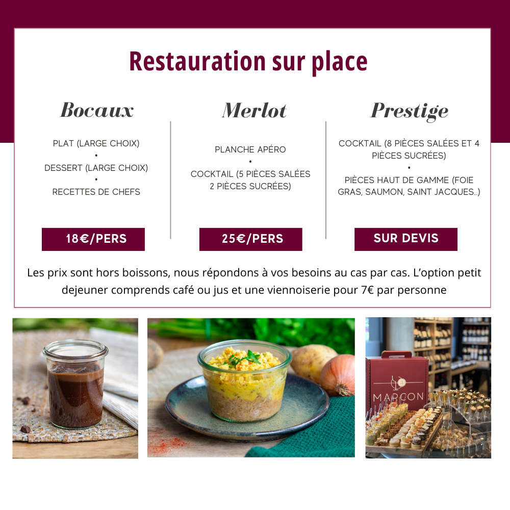 Régalez vos participants avec une restauration complète avec de nombreux choix (entre bocaux, planches apéro et cocktail traiteur).